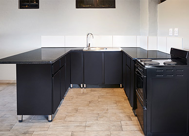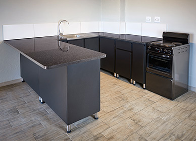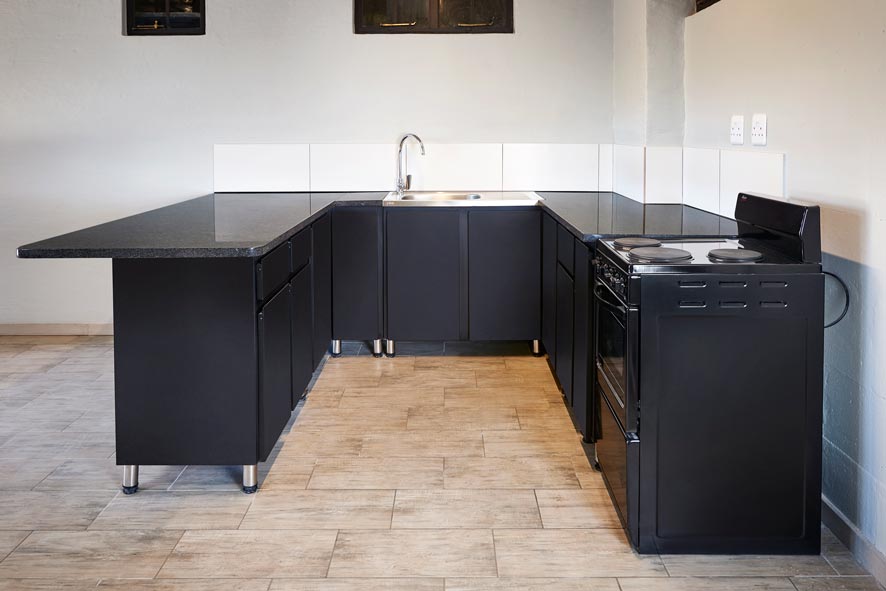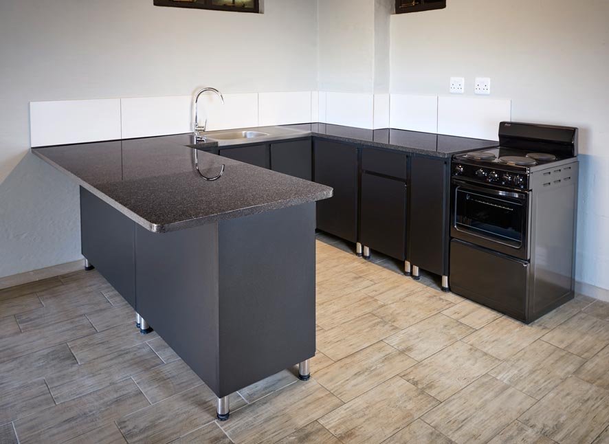 1. High quality structured matt black powder coated finish and Rustenburg Granite Work Tops-optional Formica Tops in various colours